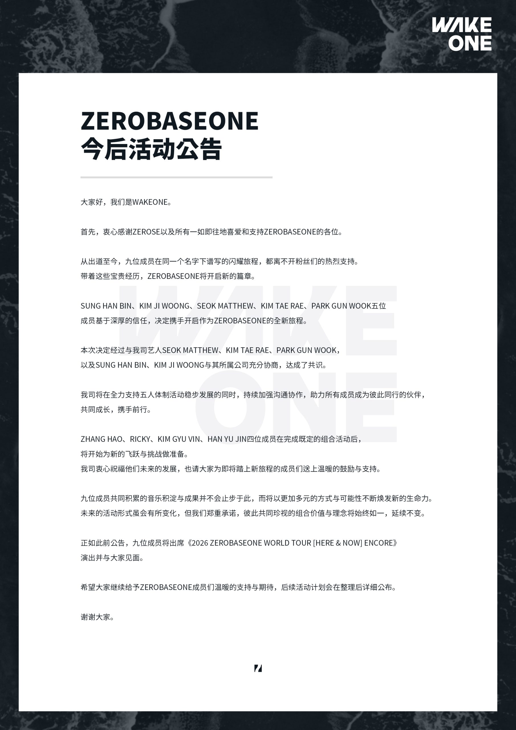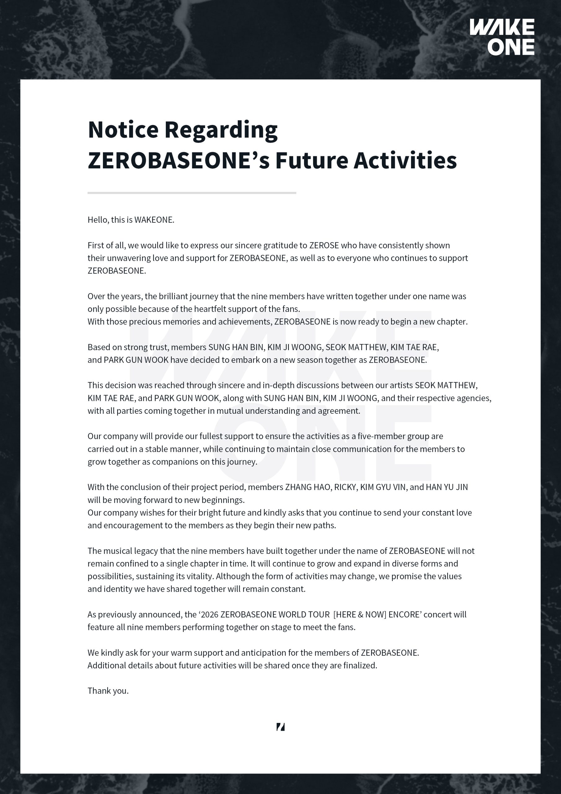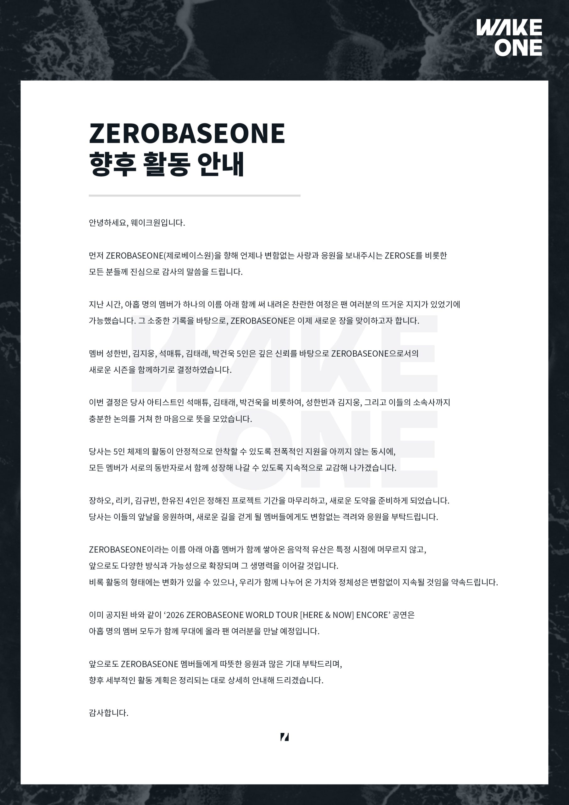 ZEROBASEONE 석매튜, 박건욱 전속계약 체결 안내